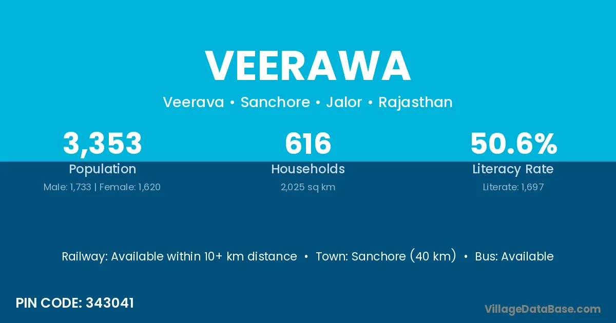 Sanchore (40 km) is the nearest town to Veerawa village for major economic activities and is located approximately 40 km away.