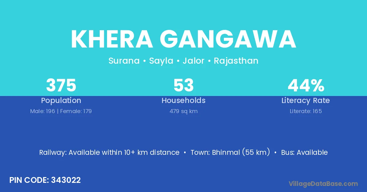 Bhinmal (55 km) is the nearest town to Khera Gangawa village for major economic activities and is located approximately 55 km away.