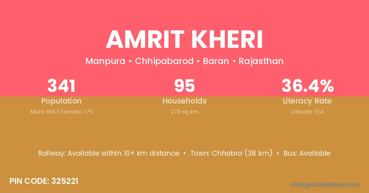 Aklera (10 km) is the nearest town to Amrit Kheri village for major economic activities and is located approximately 10 km away.