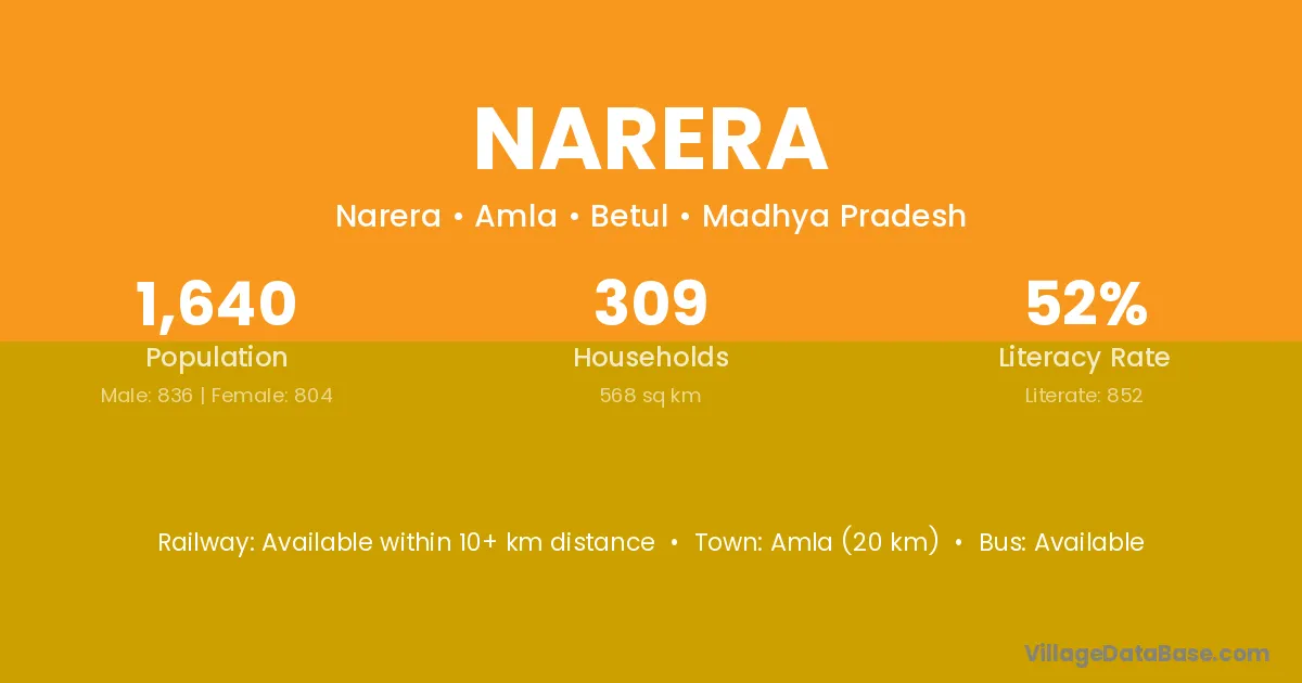 Aklera (14 km) is the nearest town to Narera village for major economic activities and is located approximately 14 km away.