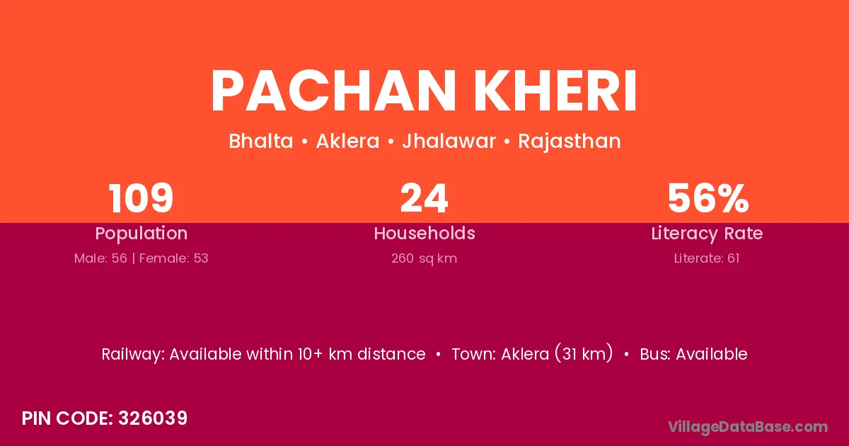 Aklera (31 km) is the nearest town to Pachan Kheri village for major economic activities and is located approximately 31 km away.