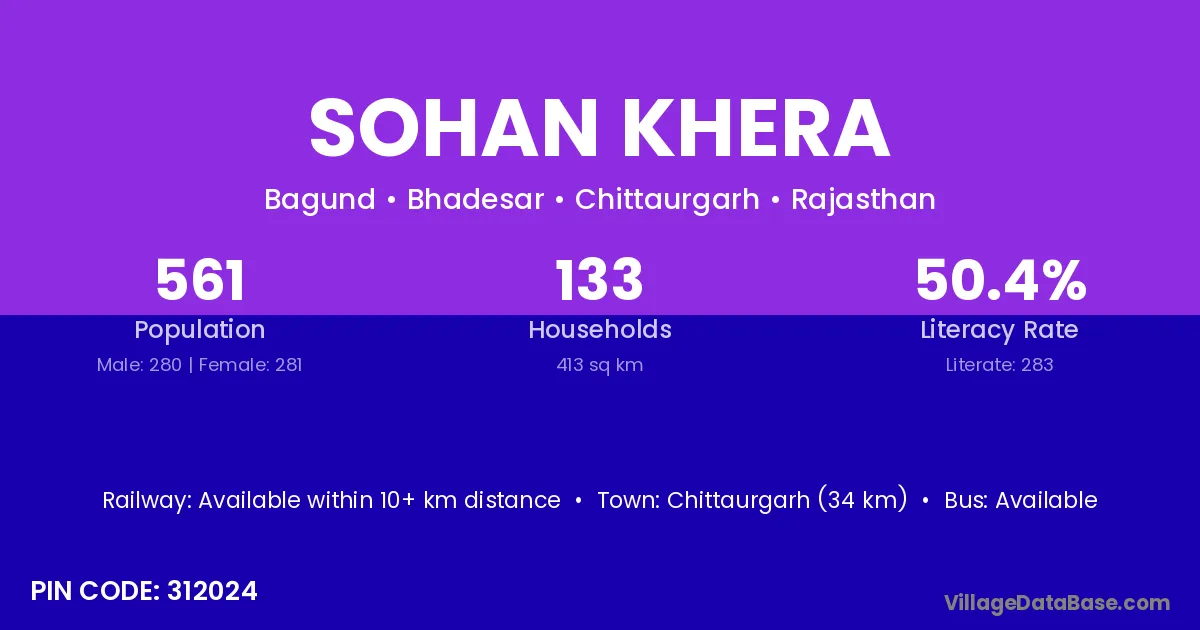 Aklera (28 km) is the nearest town to Sohan Khera village for major economic activities and is located approximately 28 km away.