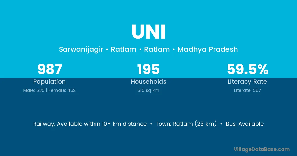 The literacy rate of Uni village is 50.91%. Male literacy stands at 63.07% and female literacy at 37.79%.
