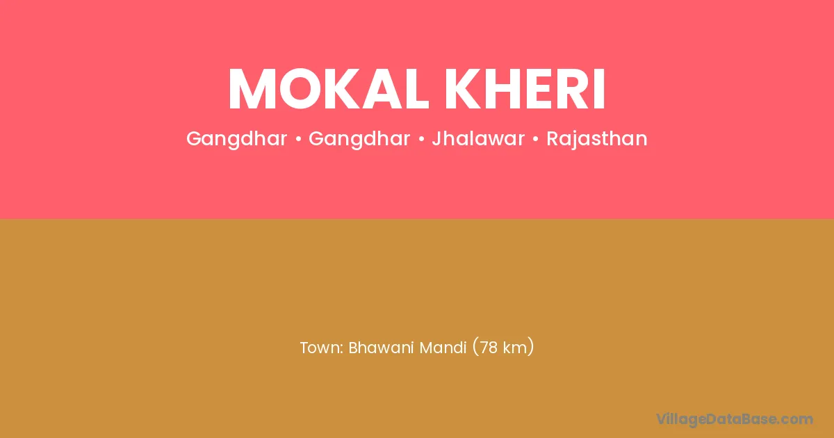 Mokal Kheri village is located in the Gangdhar Tehsil of the Jhalawar district in Rajasthan .