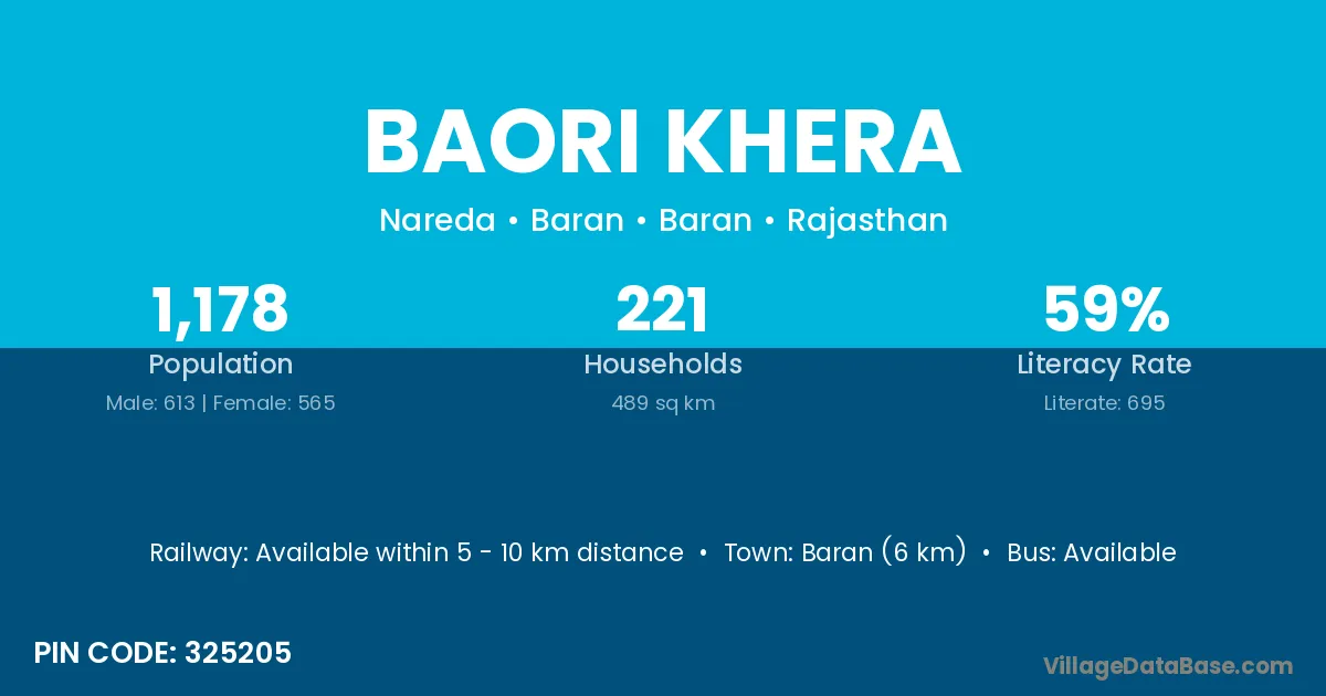 Jhalawar (5 km) is the nearest town to Baori Khera village for major economic activities and is located approximately 5 km away.
