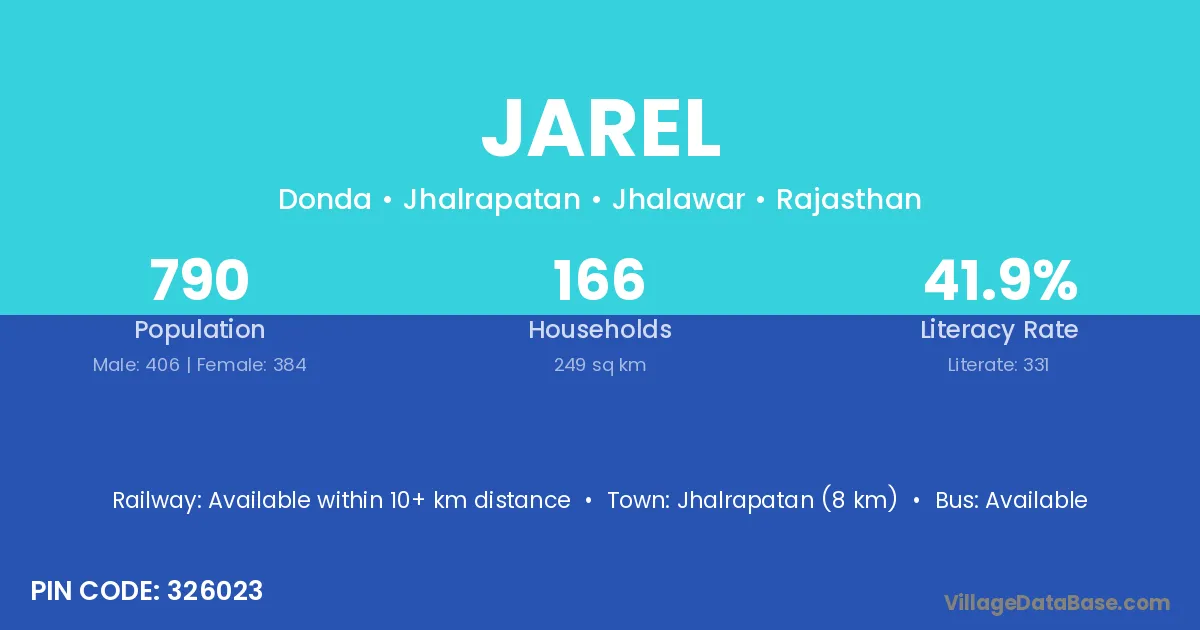 Jhalrapatan (8 km) is the nearest town to Jarel village for major economic activities and is located approximately 8 km away.