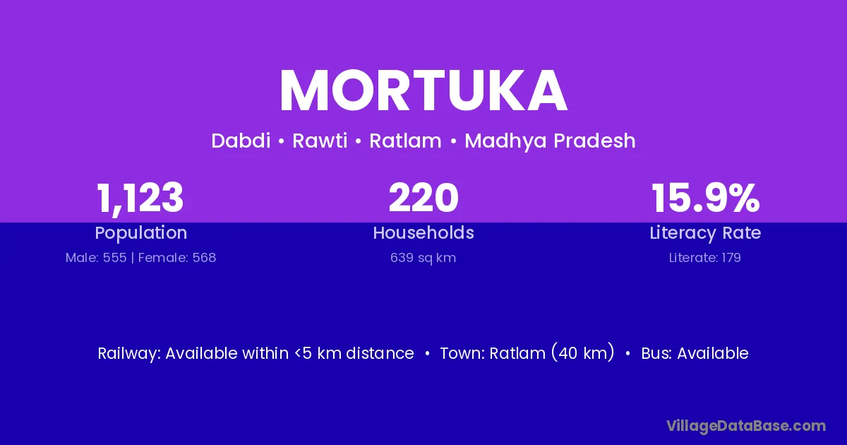 Jhalawar (13 km) is the nearest town to Mortuka village for major economic activities and is located approximately 13 km away.