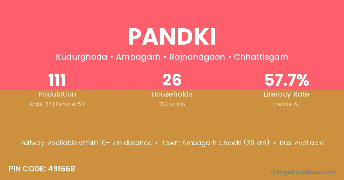 According to Census 2011 information, the village code of Pandki village is 326022.