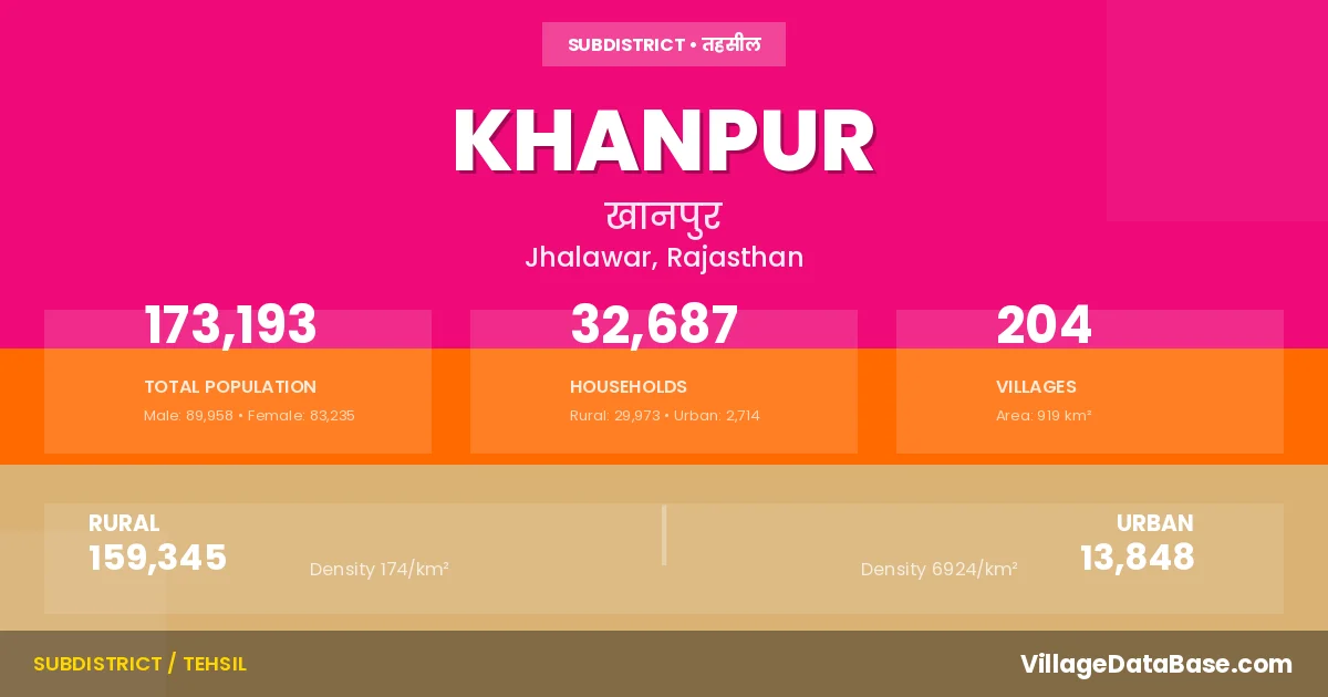 Khanpur is a town and Tehsil in the Jhalawar district of the Rajasthan. In India, a Tehsil is a subdivision of a district responsible for the administration and revenue collection of a specific area within the district. Tehsils play a crucial role in the local governance structure, contributing significantly to the development and administration of their communities.