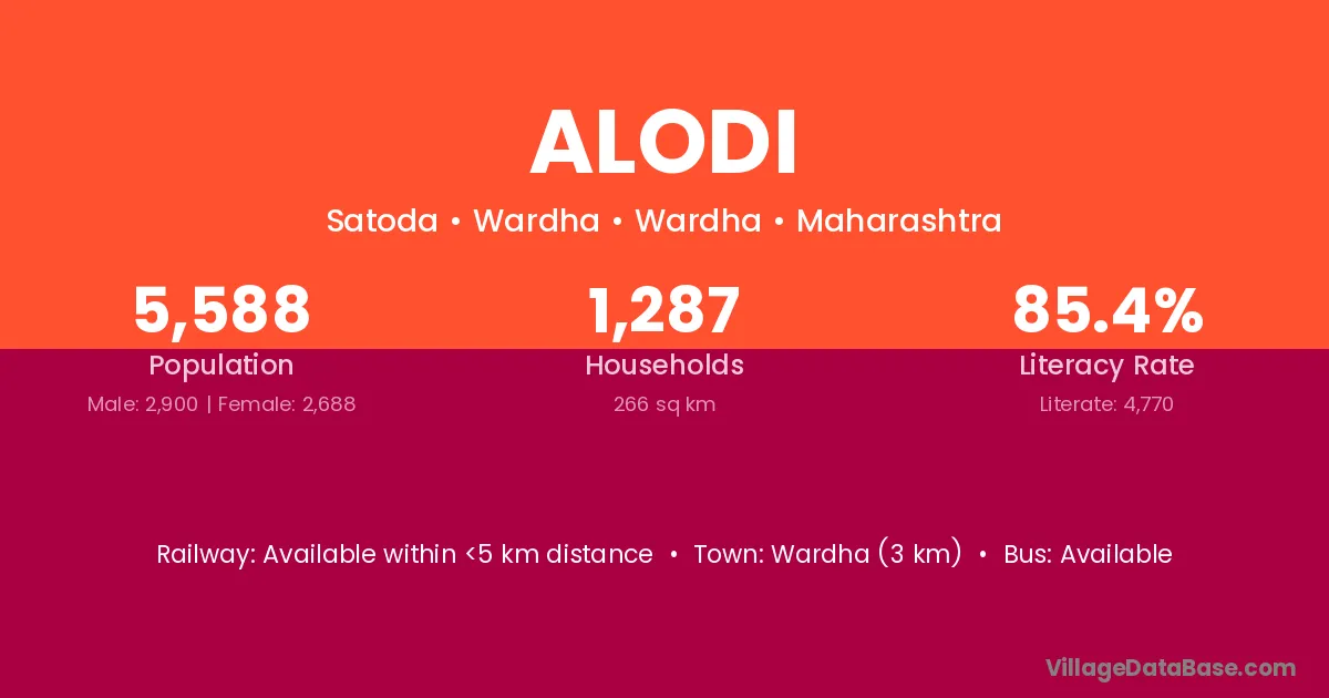 Sagod (16 km) is the nearest town to Alodi village for major economic activities and is located approximately 16 km away.