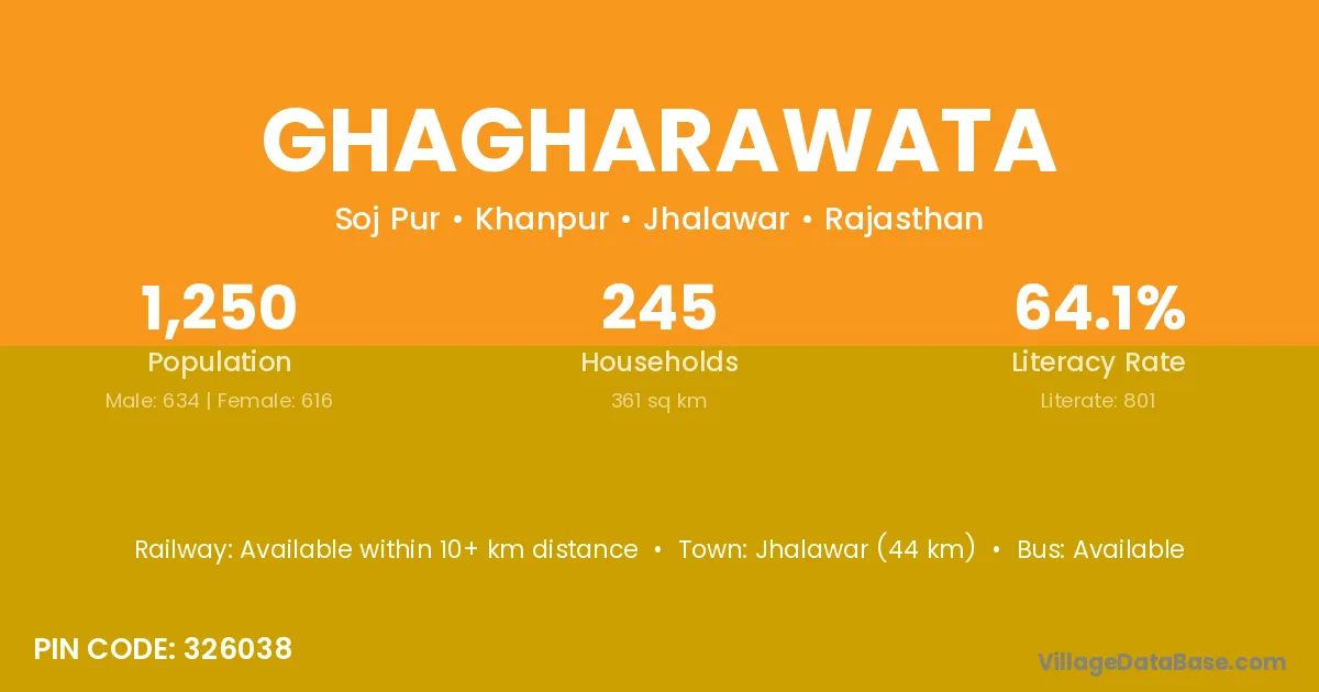 Jhalawar (44 km) is the nearest town to Ghagharawata village for major economic activities and is located approximately 44 km away.