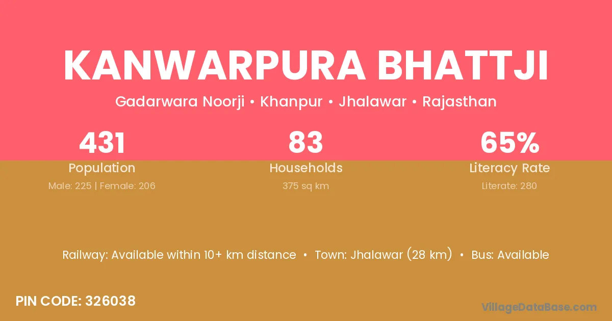 Kanwarpura Bhattji village has a total population of 431 people, of which 225 are males and 206 are females.