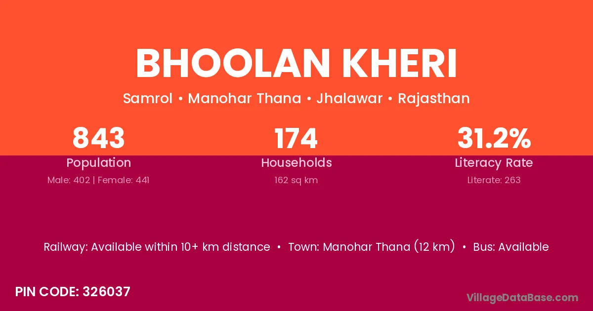 According to Census 2011 information, the village code of Bhoolan Kheri village is 326037.