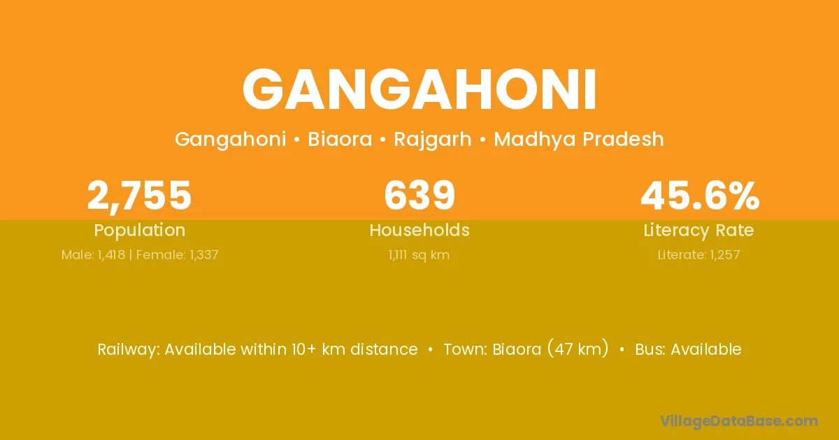 According to Census 2011 information, the village code of Gangahoni village is 326037.
