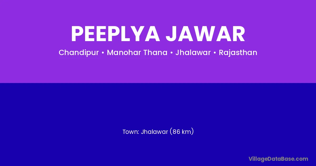 Jhalawar (86 km) is the nearest town to Peeplya Jawar village for major economic activities and is located approximately 86 km away.