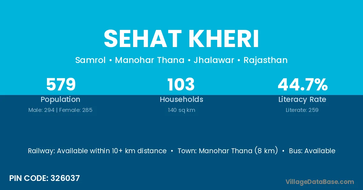 Manohar Thana (8 km) is the nearest town to Sehat Kheri village for major economic activities and is located approximately 8 km away.