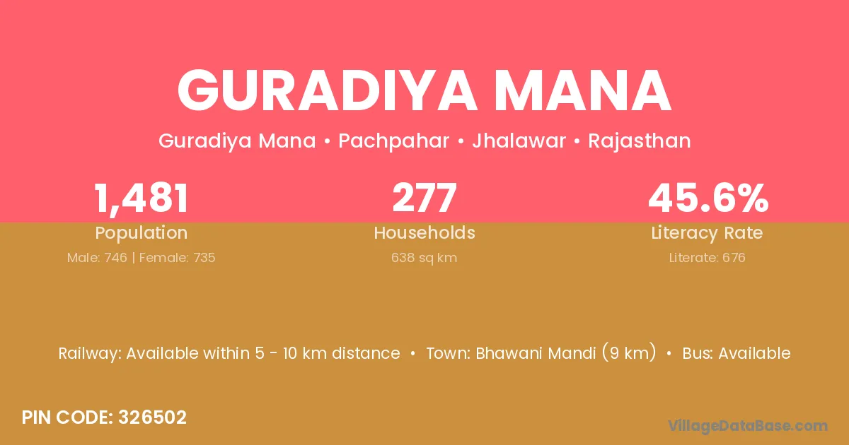 Guradiya Mana village has a total population of 1,481 people, of which 746 are males and 735 are females.