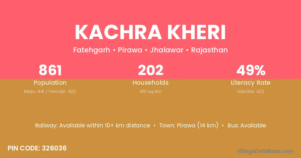 Pirawa (14 km) is the nearest town to Kachra Kheri village for major economic activities and is located approximately 14 km away.
