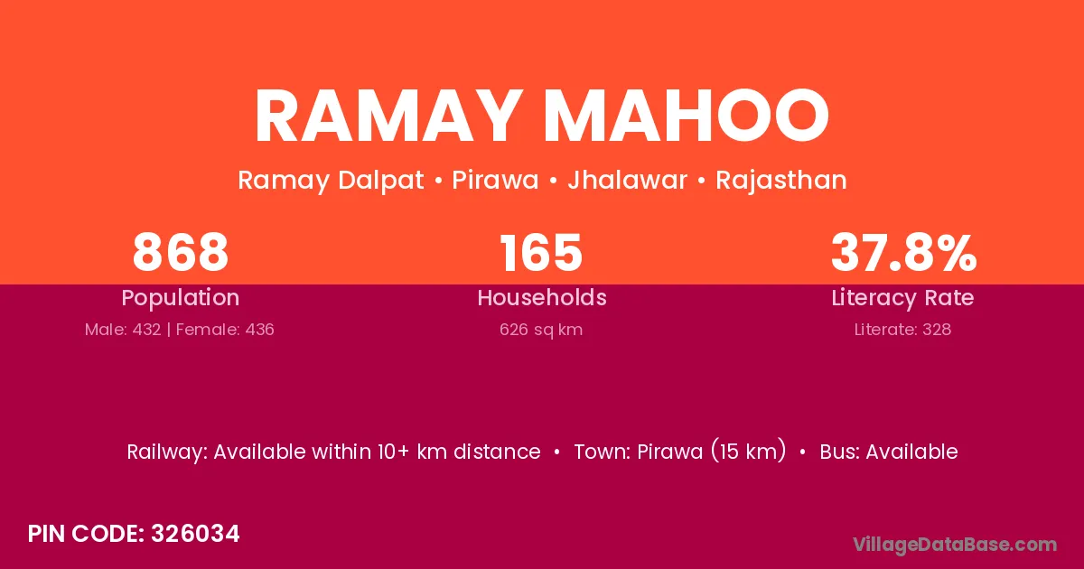 Pirawa (15 km) is the nearest town to Ramay Mahoo village for major economic activities and is located approximately 15 km away.