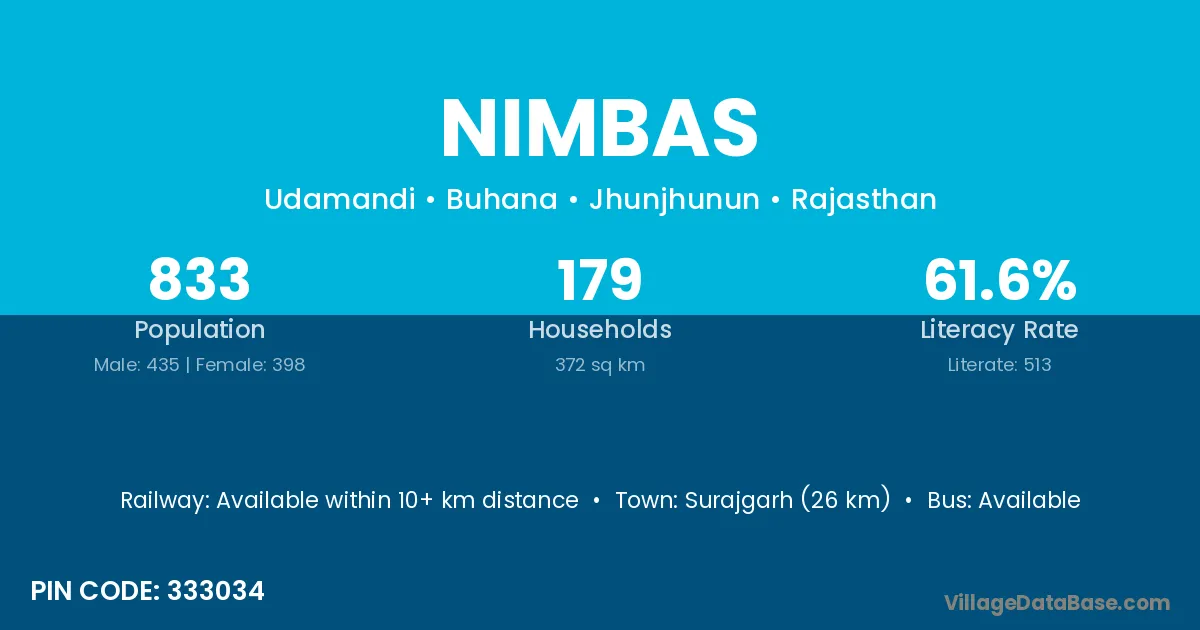 Surajgarh (26 km) is the nearest town to Nimbas village for major economic activities and is located approximately 26 km away.
