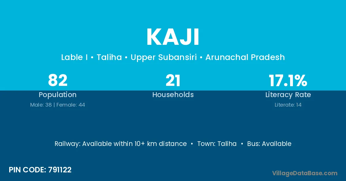 The literacy rate of Kaji village is 64.70%. Male literacy stands at 74.21% and female literacy at 54.96%.