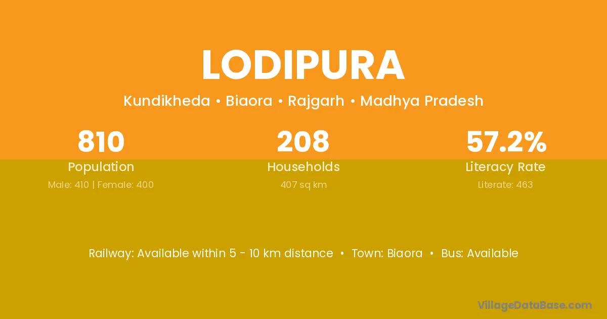 According to Census 2011 information, the village code of Lodipura village is 333026.