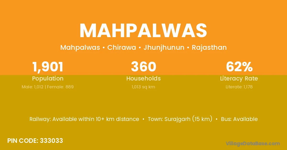 Surajgarh (15 km) is the nearest town to Mahpalwas village for major economic activities and is located approximately 15 km away.