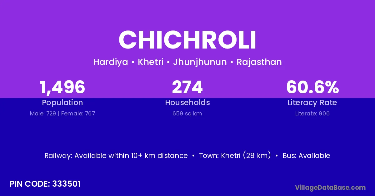 Khetri (28 km) is the nearest town to Chichroli village for major economic activities and is located approximately 28 km away.