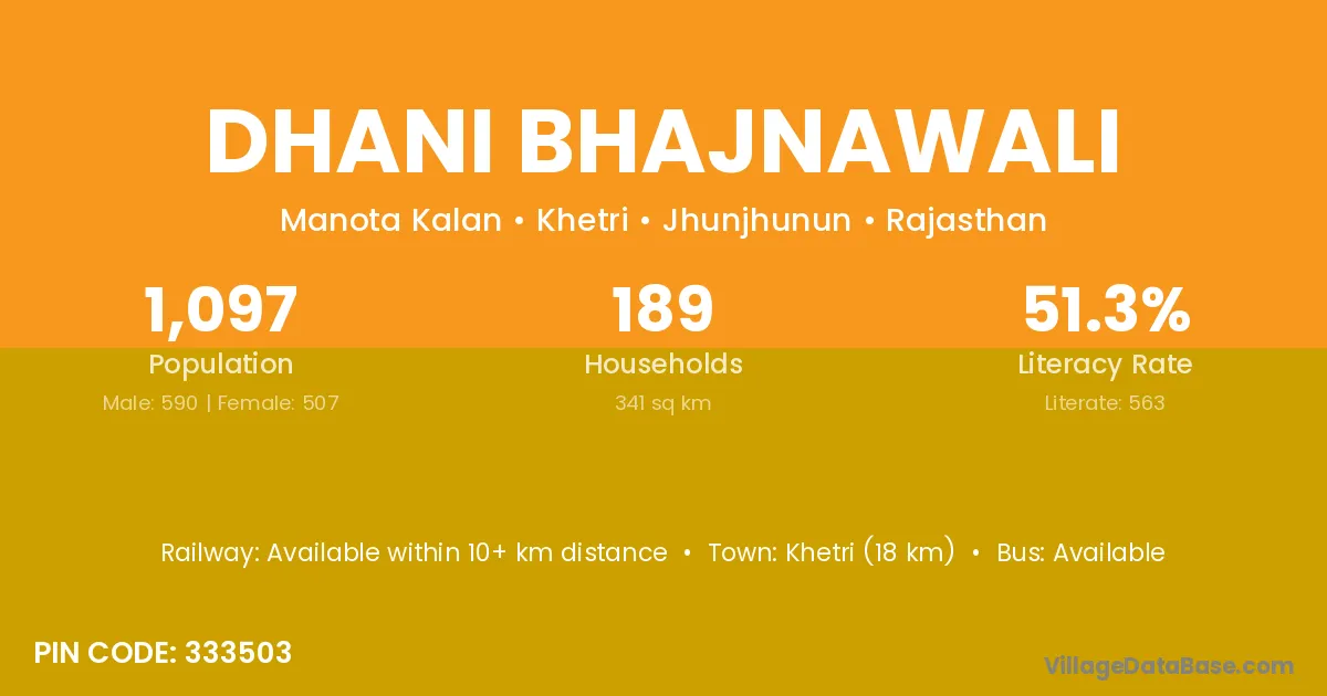 Khetri (18 km) is the nearest town to Dhani Bhajnawali village for major economic activities and is located approximately 18 km away.