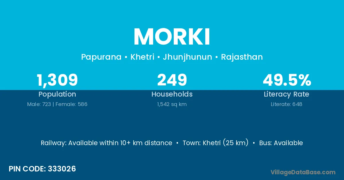 Khetri (25 km) is the nearest town to Morki village for major economic activities and is located approximately 25 km away.