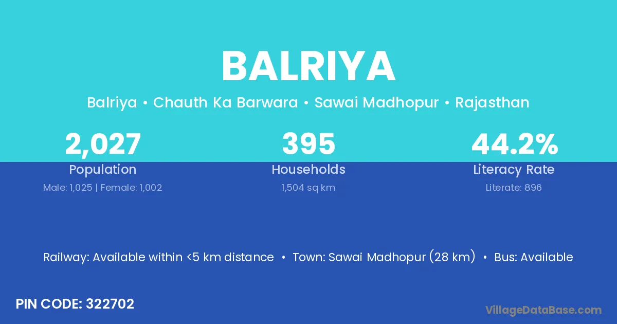 According to Census 2011 information, the village code of Balriya village is 333705.