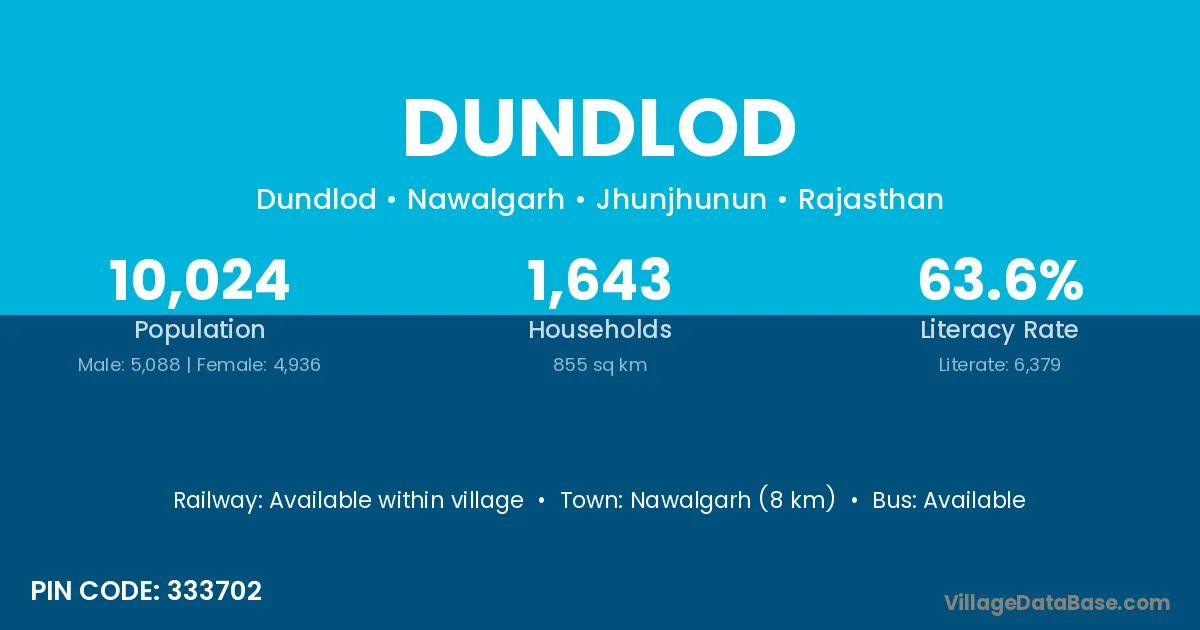Nawalgarh (8 km) is the nearest town to Dundlod village for major economic activities and is located approximately 8 km away.