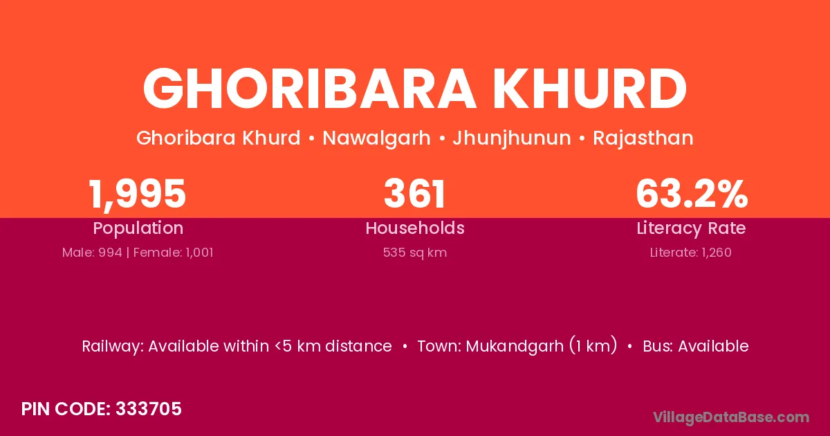 Ghoribara Khurd village has a total population of 1,995 people, of which 994 are males and 1,001 are females.