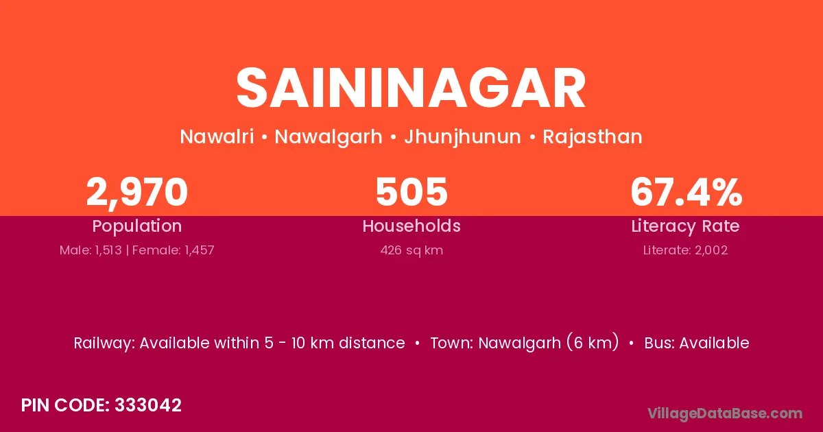 Nawalgarh (6 km) is the nearest town to Saininagar village for major economic activities and is located approximately 6 km away.