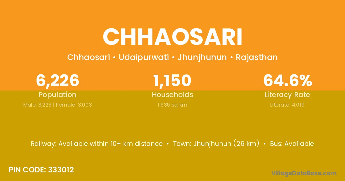 Jhunjhunun (26 km) is the nearest town to Chhaosari village for major economic activities and is located approximately 26 km away.