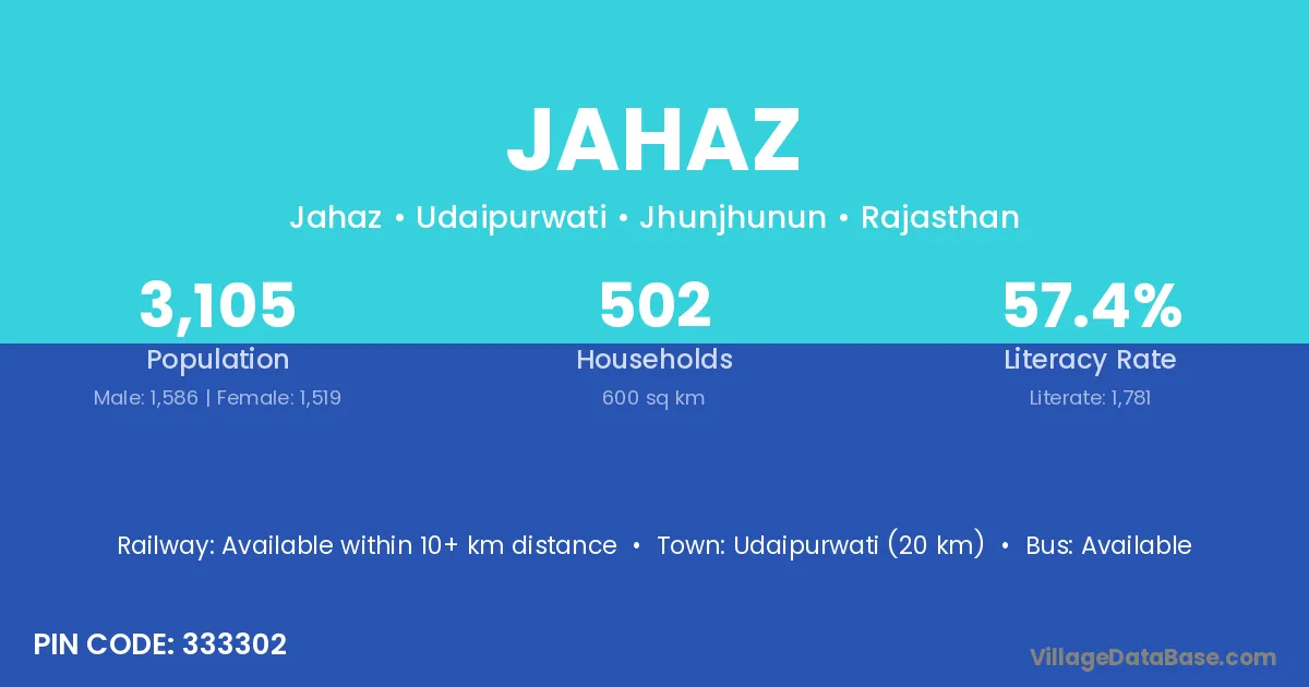 Udaipurwati (20 km) is the nearest town to Jahaz village for major economic activities and is located approximately 20 km away.