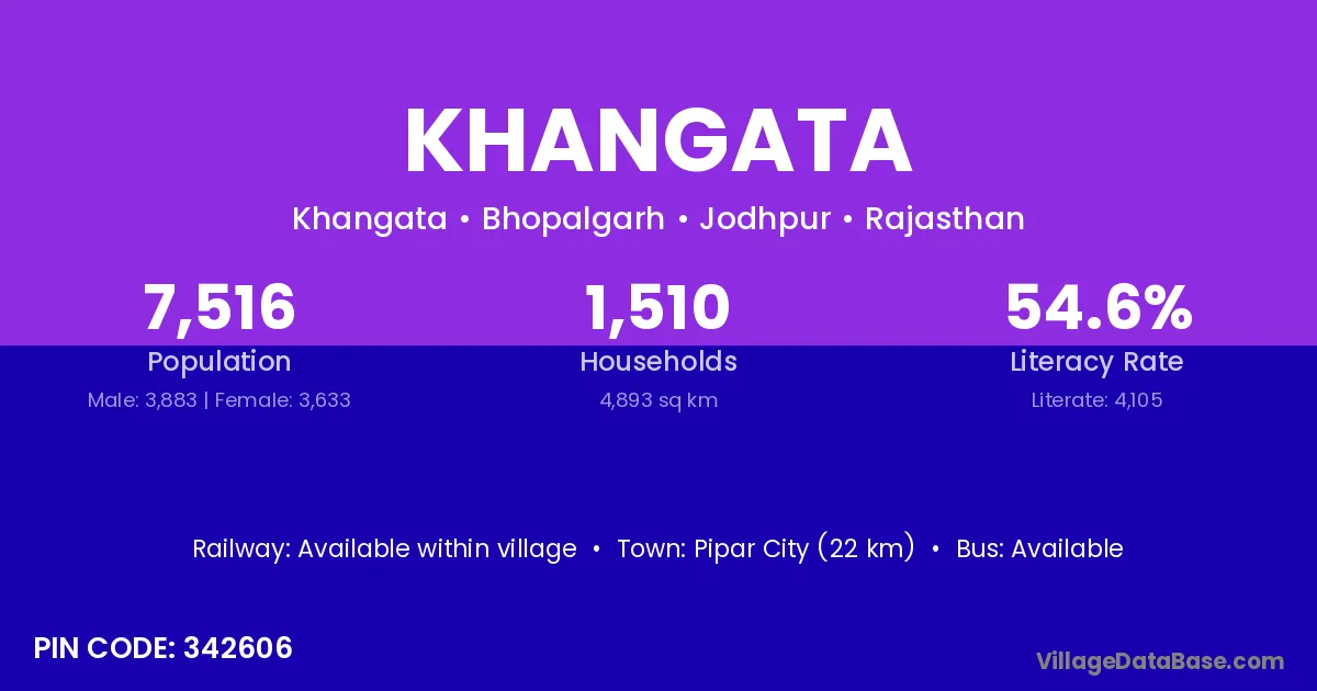 Pipar City (22 km) is the nearest town to Khangata village for major economic activities and is located approximately 22 km away.
