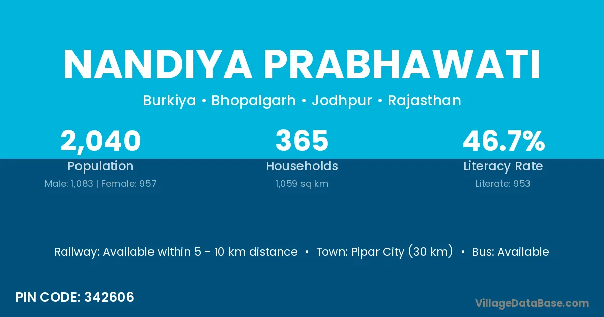 Pipar City (30 km) is the nearest town to Nandiya Prabhawati village for major economic activities and is located approximately 30 km away.