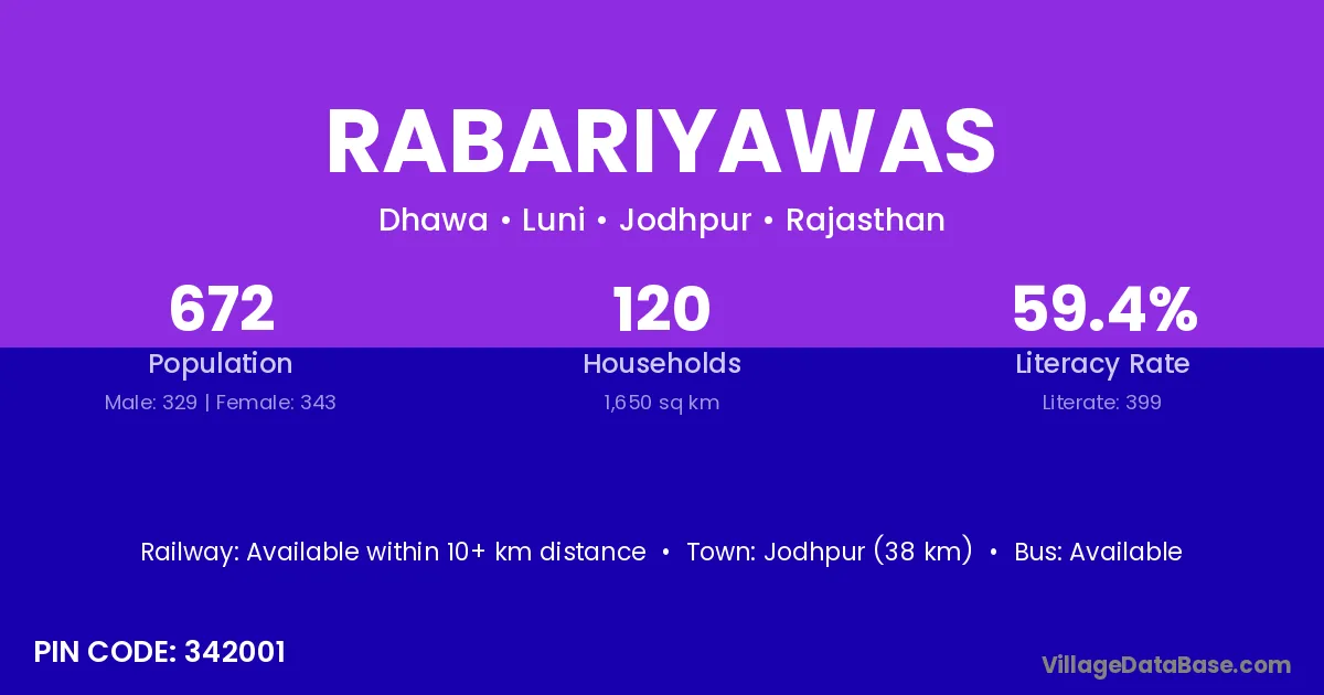 Jodhpur (38 km) is the nearest town to Rabariyawas village for major economic activities and is located approximately 38 km away.