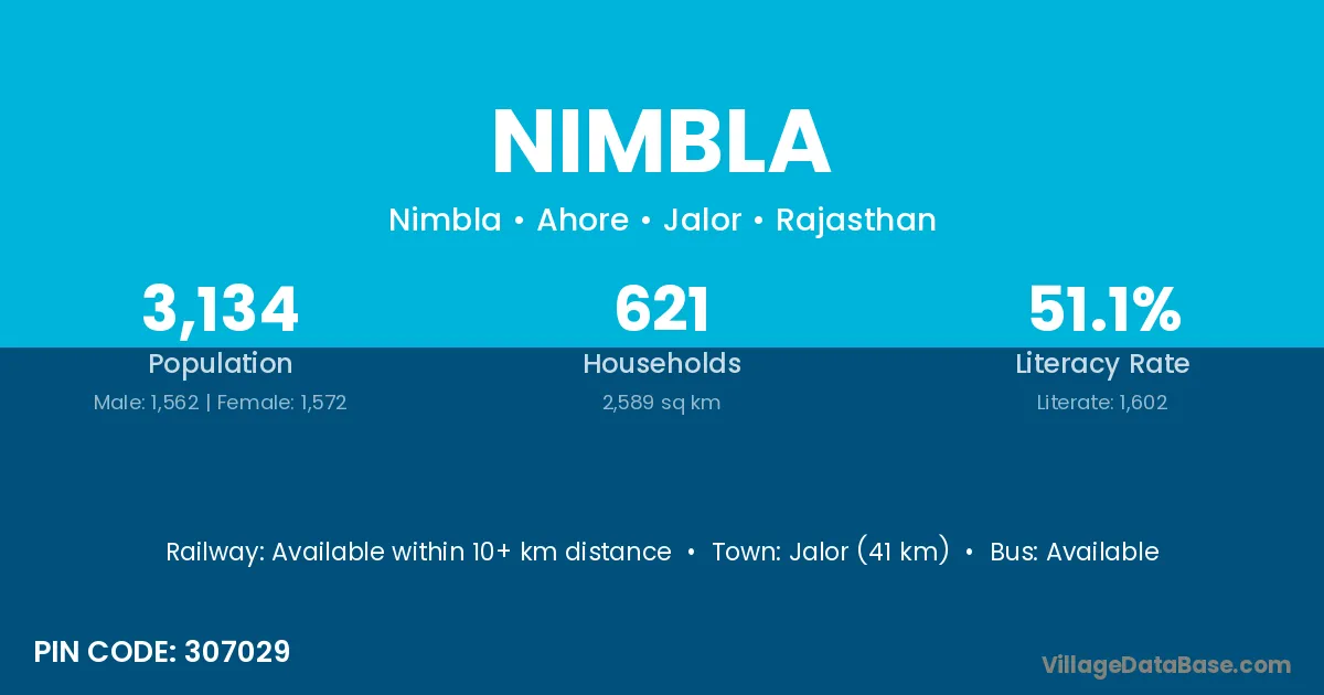Phalodi (42 km) is the nearest town to Nimbla village for major economic activities and is located approximately 42 km away.
