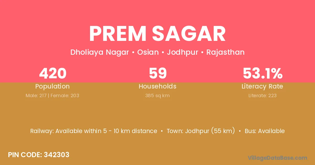 Jodhpur (55 km) is the nearest town to Prem Sagar village for major economic activities and is located approximately 55 km away.