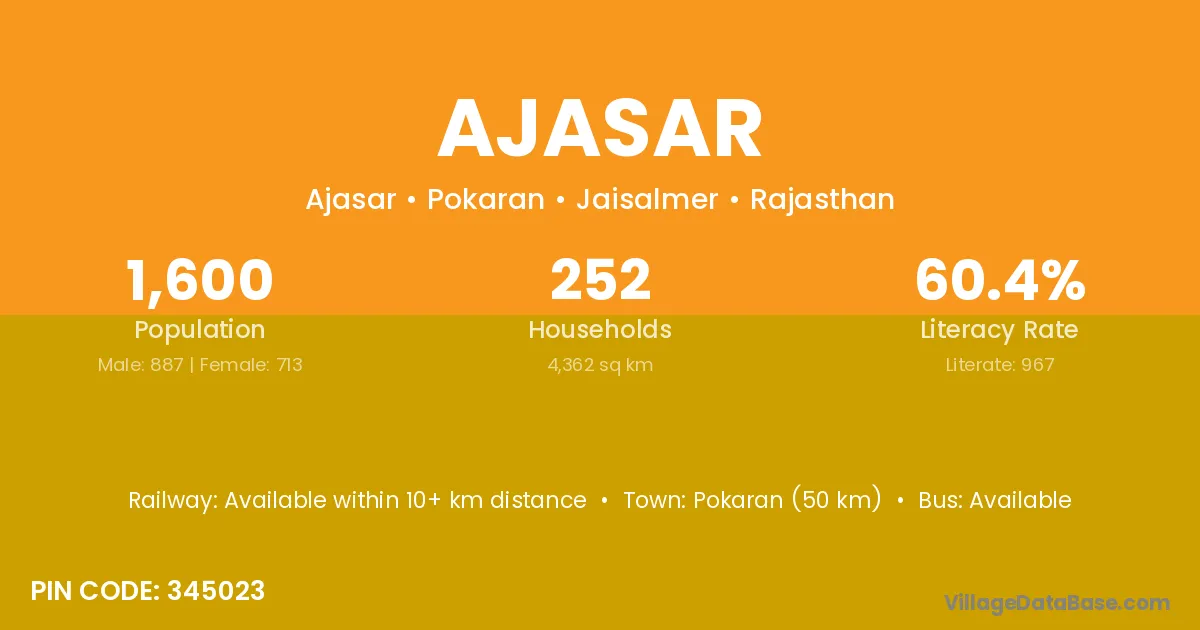 Phalodi (92 km) is the nearest town to Ajasar village for major economic activities and is located approximately 92 km away.