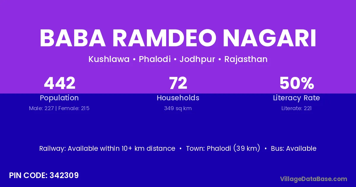 Baba Ramdeo Nagari village has a total population of 442 people, of which 227 are males and 215 are females.