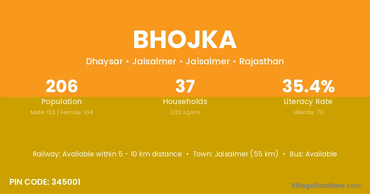 Phalodi (8 km) is the nearest town to Bhojka village for major economic activities and is located approximately 8 km away.