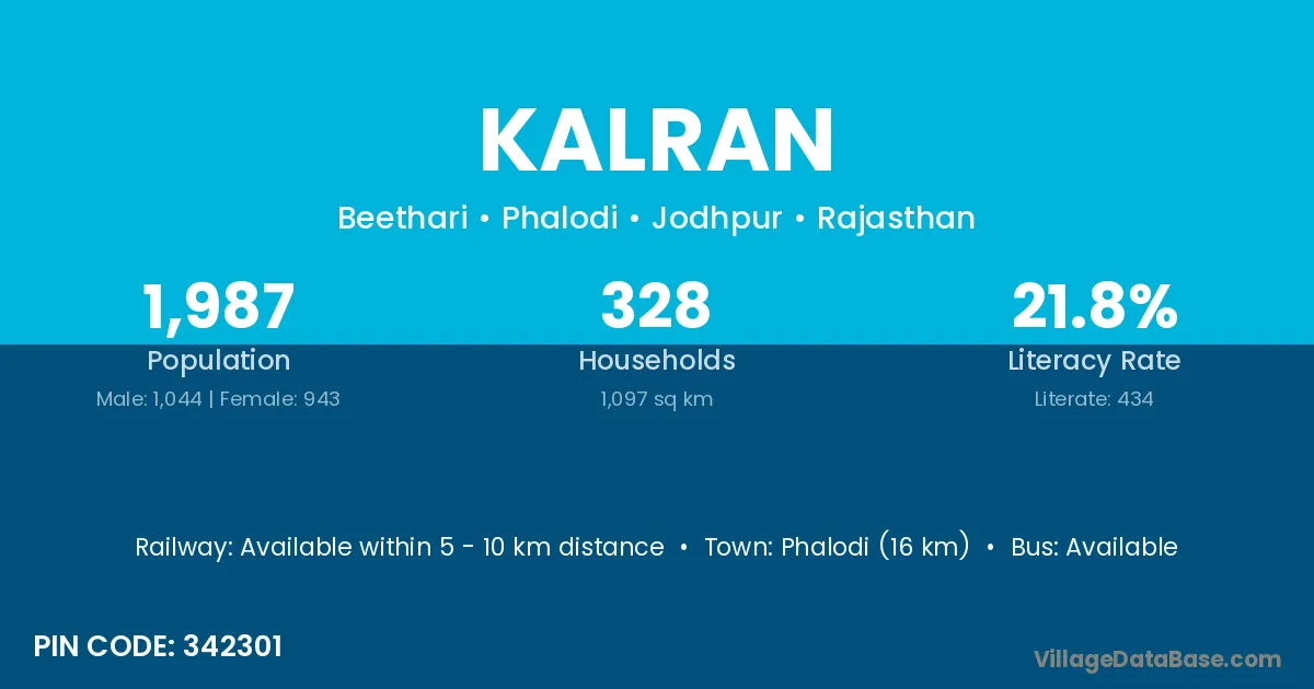 Phalodi (16 km) is the nearest town to Kalran village for major economic activities and is located approximately 16 km away.