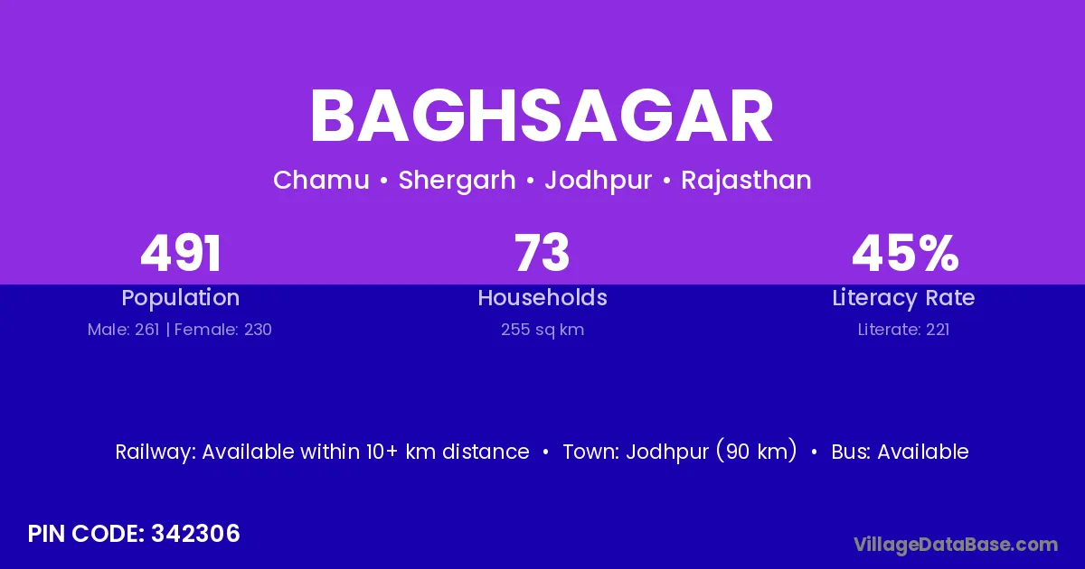 Jodhpur (90 km) is the nearest town to Baghsagar village for major economic activities and is located approximately 90 km away.