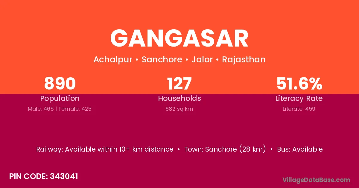 According to Census 2011 information, the village code of Gangasar village is 342023.