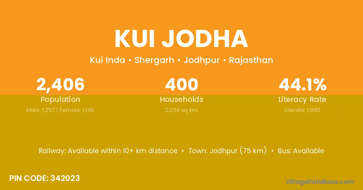Jodhpur (75 km) is the nearest town to Kui Jodha village for major economic activities and is located approximately 75 km away.