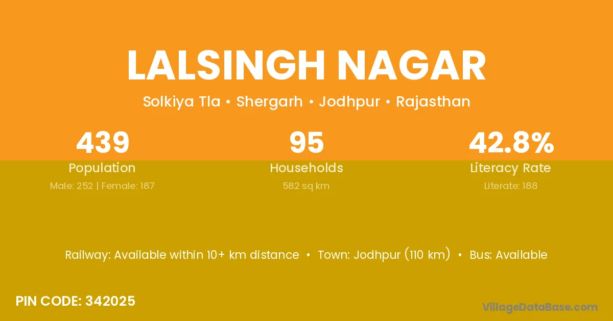 Jodhpur (110 km) is the nearest town to Lalsingh Nagar village for major economic activities and is located approximately 110 km away.