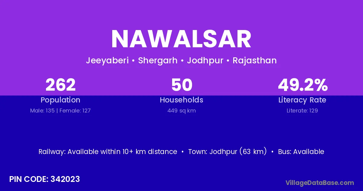 According to Census 2011 information, the village code of Nawalsar village is 342023.
